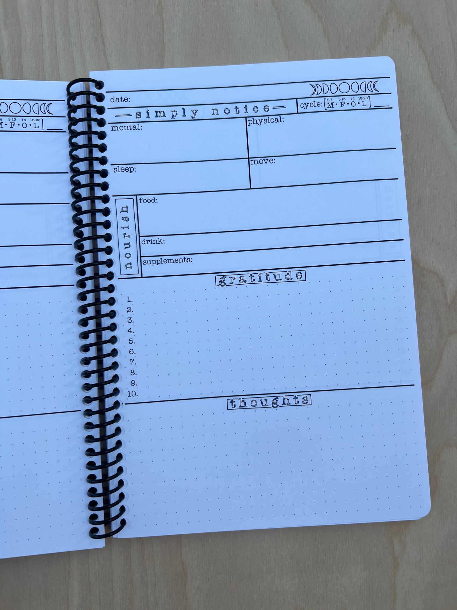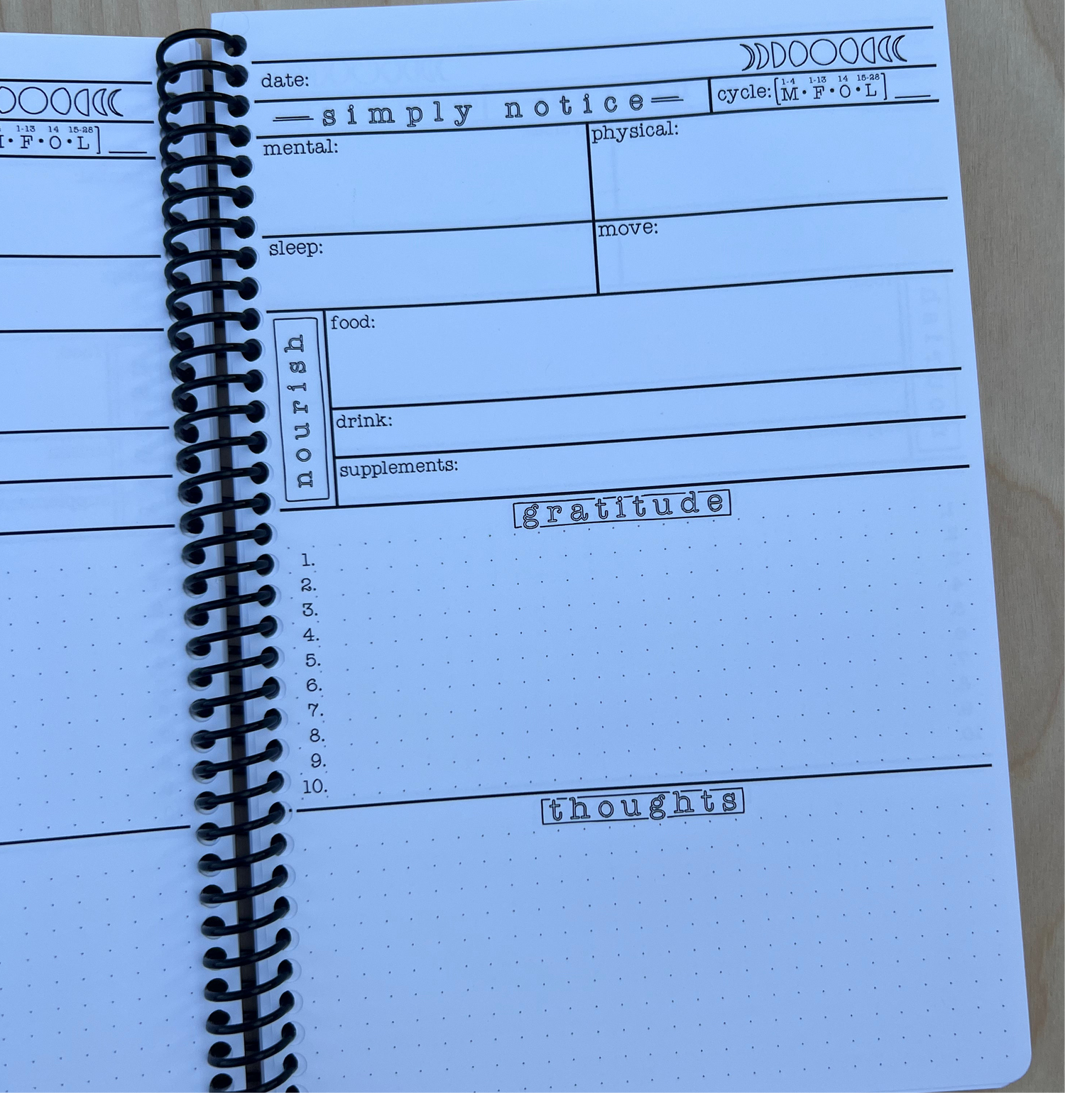 The Art of Noticing is more than a journal—it’s a daily practice. With thoughtfully chosen prompts, it helps you track your rhythms, care for your body, and create space for gratitude. Designed with simplicity in mind, this journal invites you to pause, reflect, and nurture your wellbeing, so you can show up more fully in your life.